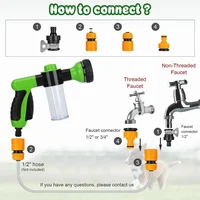 1.Pup jet dog wash comes with 8 types of nozzles, rotate the nozzle to choose the mode you need (rinse, flow, flat, center, jet, shower, spray and cone), suitable for pet shower, vehicle washing, watering garden, lawn and plants.
