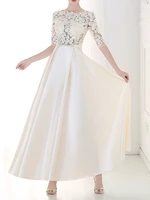 Be the first to review “Draped Elegant Temperament Prom Vestidos O-Neck Sleeveless Lace V-Back Evening Dresses Bow Slim Waist Long Wedding Party Dress” Cancel reply