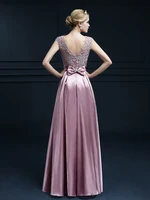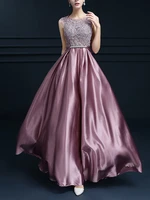 Draped Elegant Temperament Prom Vestidos O-Neck Sleeveless Lace V-Back Evening Dresses Bow Slim Waist Long Wedding Party Dress