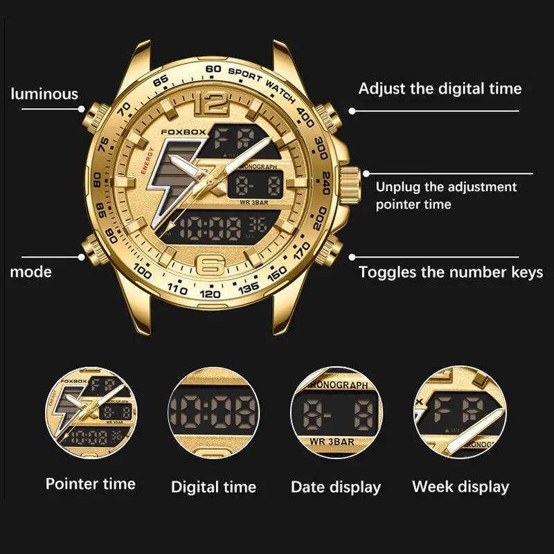 Dual Display Watch Men Top Brand Luxury Men Watch Fashion Waterproof Sport Military Quartz Watches Golden Chronograph Clock