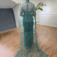 Dubai Arabia Nude Mermaid Long Cape Luxury Evening Dresses Gowns for Women Wedding Party