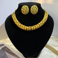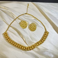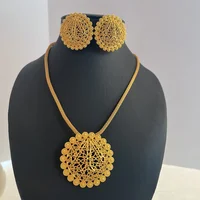 Earrings and Pendant Jewelry Set African Gold Color Necklace Hollow Out Design Drop Earrings and Chain Necklace 2Pcs Set Party