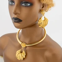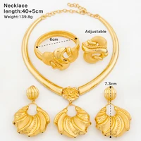 Dubai Gold Color Jewelry Set for Women Large Size Flower Pendant Necklace and Earrings Hollow Out Bangle Ring Set Bride African