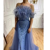 Dubai Luxury Beaded Blue Mermaid Elegant Overskirt Evening Dresses Gowns for Women Wedding Party