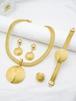 Dubai Gold Color Jewelry Sets For Women Bridal Luxury Necklace Earrings Bracelet Ring Set African Wedding Party Gifts