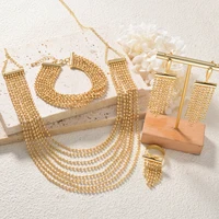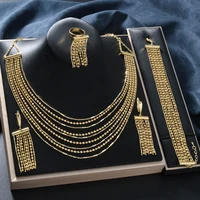 Beads Necklace Set Gold Color Beaded Earrings Bracelet Ring For Dubai Women Gold Plated Wedding Accessories Jewelry Set Party