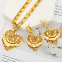 Earrings and Pendant Jewelry Set African Gold Color Necklace Hollow Out Design Drop Earrings and Chain Necklace 2Pcs Set Party