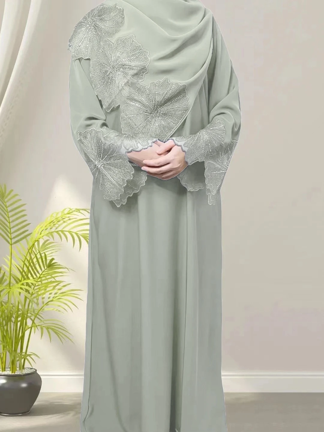 Be the first to review “Eid Robe Muslim Abaya Dress & Scarf 2 Piece Set Dubai Embroidered Kebaya Gowns Moroccan Caftan Kaftan Islam Oman Ladies Dresses” Cancel reply