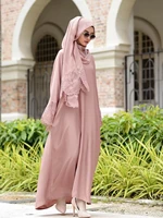 Eid Robe Muslim Abaya Dress & Scarf 2 Piece Set Dubai Embroidered Kebaya Gowns Moroccan Caftan Kaftan Islam Oman Ladies Dresses