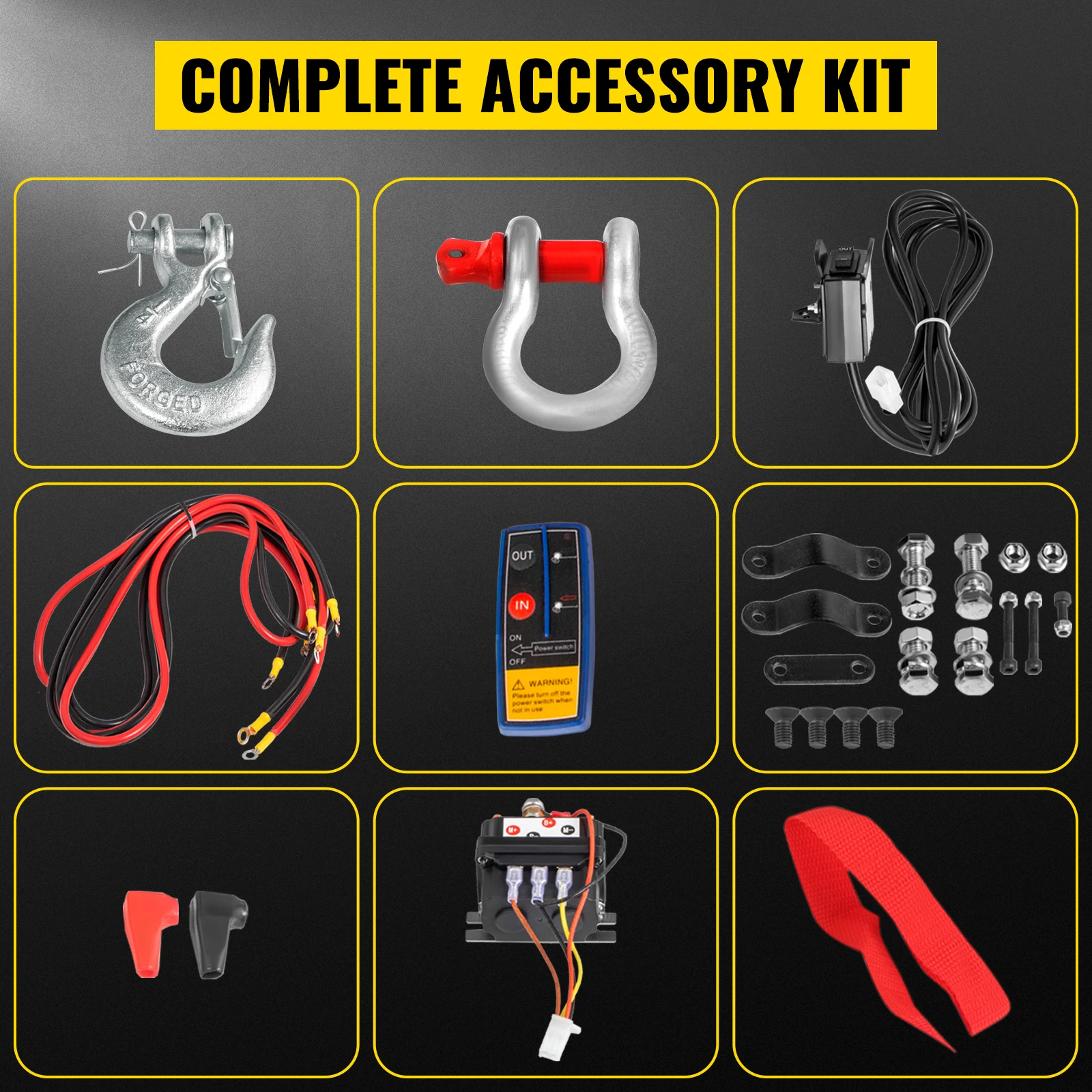 All towing winches come with a fully equipped accessory kit, including remotes, a hook, a shackle, control box, wire, and much more, ensuring excellent working performance.