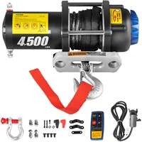 The electric winch features a 4500 lbs loading capacity, suitable for an ATV, UTV, car, boat, truck, jeep, modified vehicle, and utility trailer.