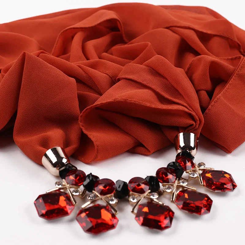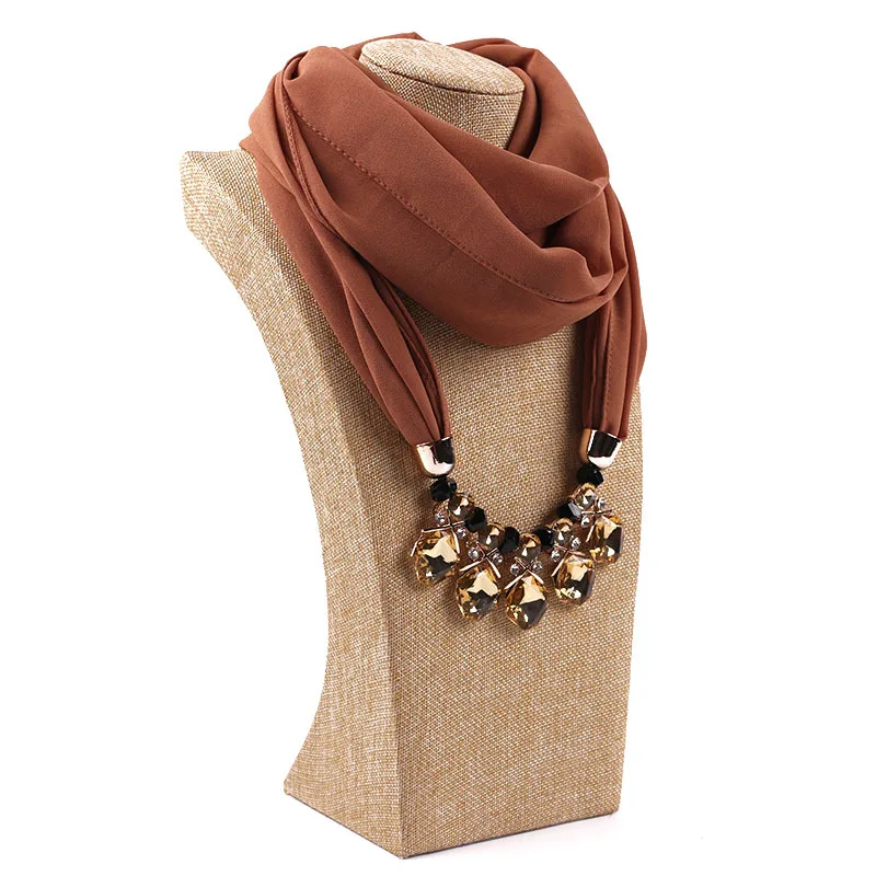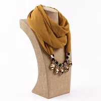 Multi-style Decorative Jewelry Necklace Resin Beads Pendant Scarf Women Foulard Femme Head Scarves Hijab Scarfs