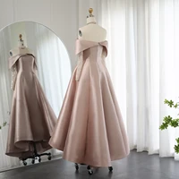 Elegant Khaki Satin High Low Dubai Evening Dress for Wedding Party Halter Arabic Women Midi Formal Guest Gowns