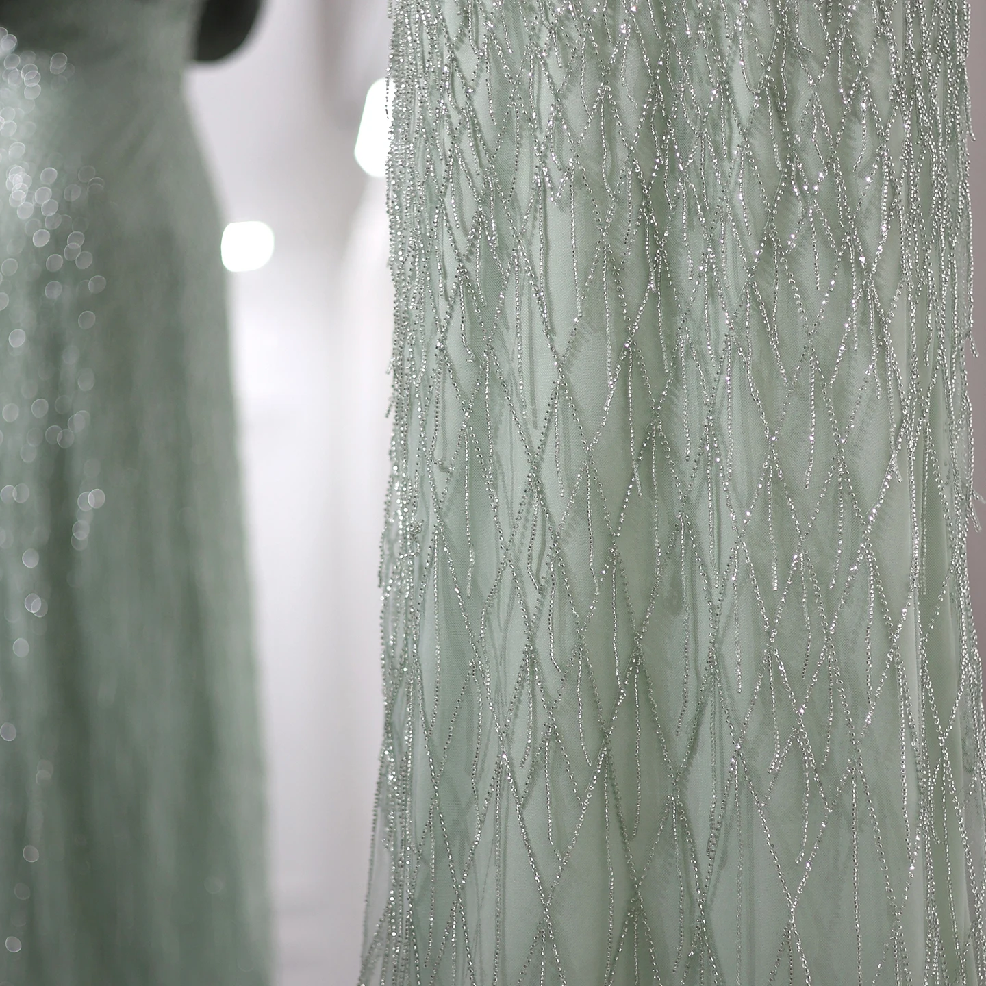 Elegant Off Shoulder Sage Green Dubai Evening Dresses for Women Wedding Luxury Tassel Arabic Formal Party Gown