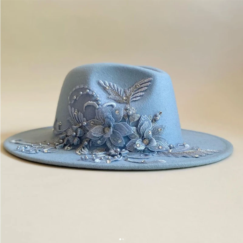 Embroidered three-dimensional flower fedora hat Women’s jazz top hat Spring and autumn panama church fashion elegant wedding Hat