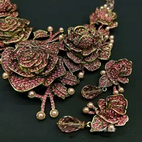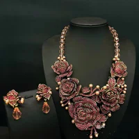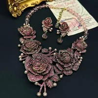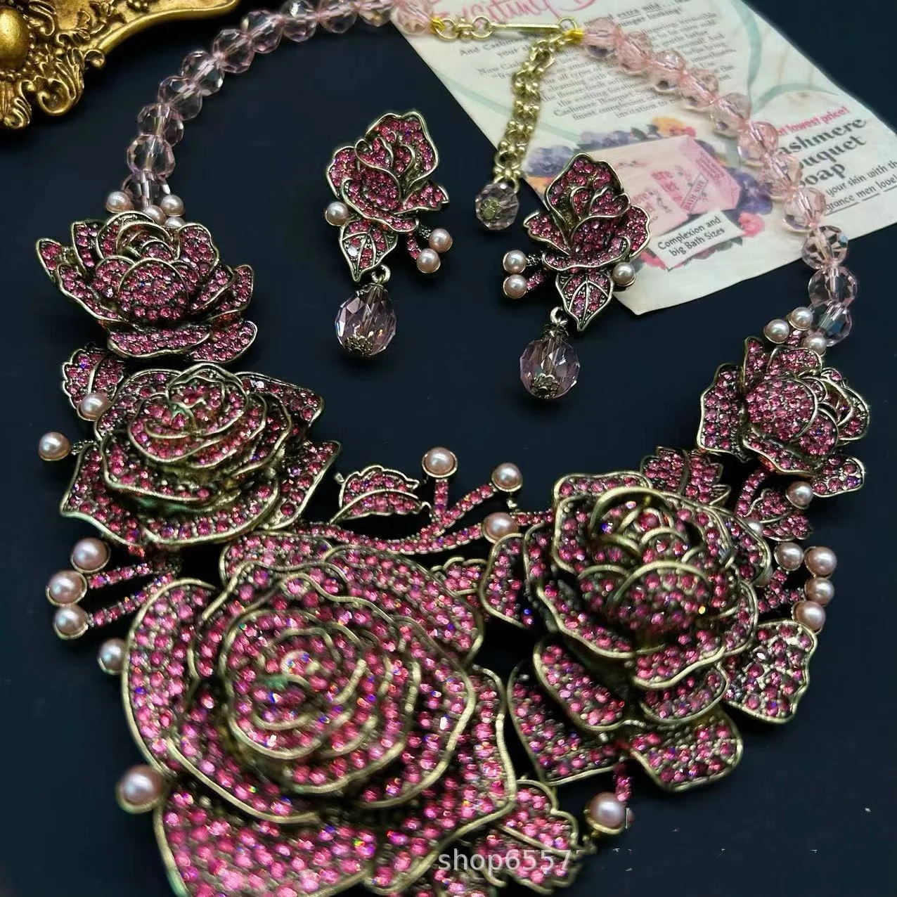 Rose pink heavy industry vintage diamond-encrusted necklace middle exaggerated high-level cross-bor