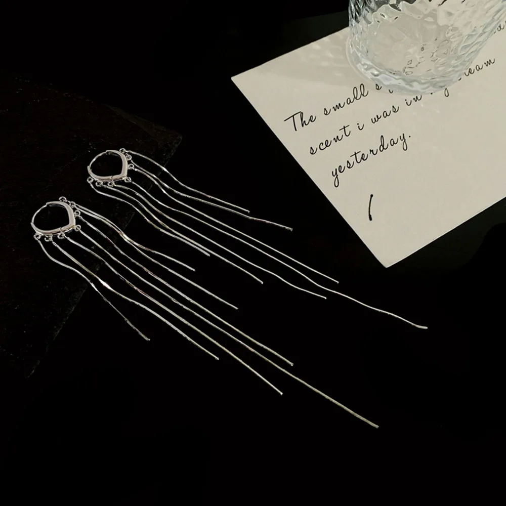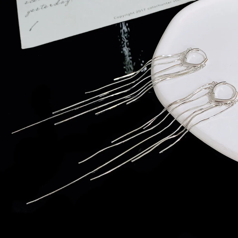 Exaggerated Long Silver Colour Tassel Earrings for Woman Simple Personality Fashion Earrings Wedding Jewelry Birthday Gift