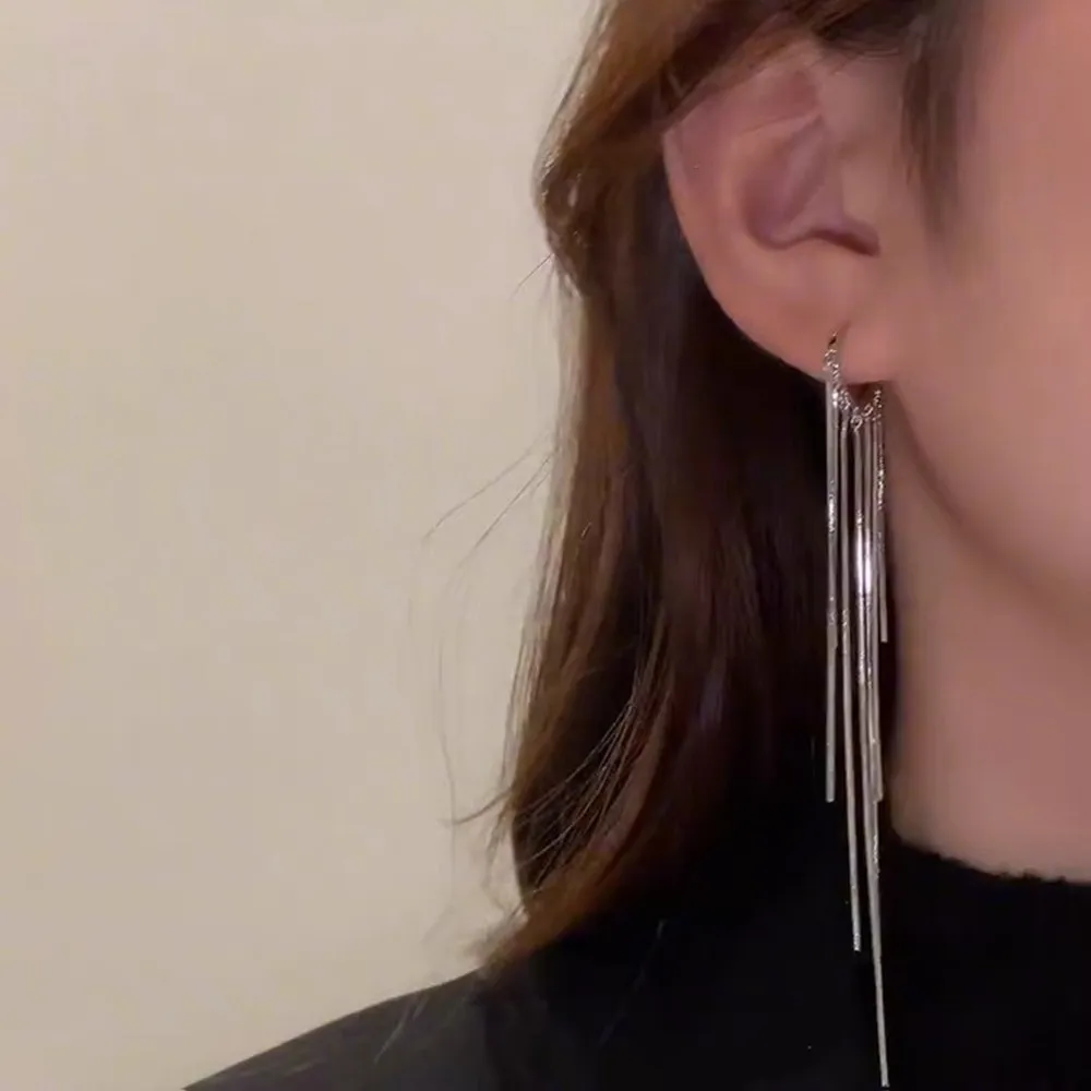 Be the first to review “Exaggerated Long Silver Colour Tassel Earrings for Woman Simple Personality Fashion Earrings Wedding Jewelry Birthday Gift” Cancel reply