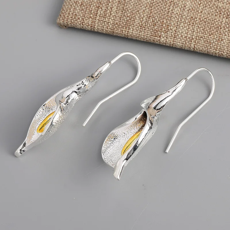 Exquisite Blooming Flower Hook Earrings Simple Accessories Gold Silver Color Plant Dangle Earrings for Women Jewelry
