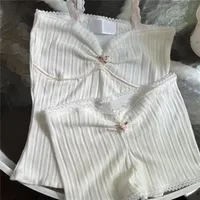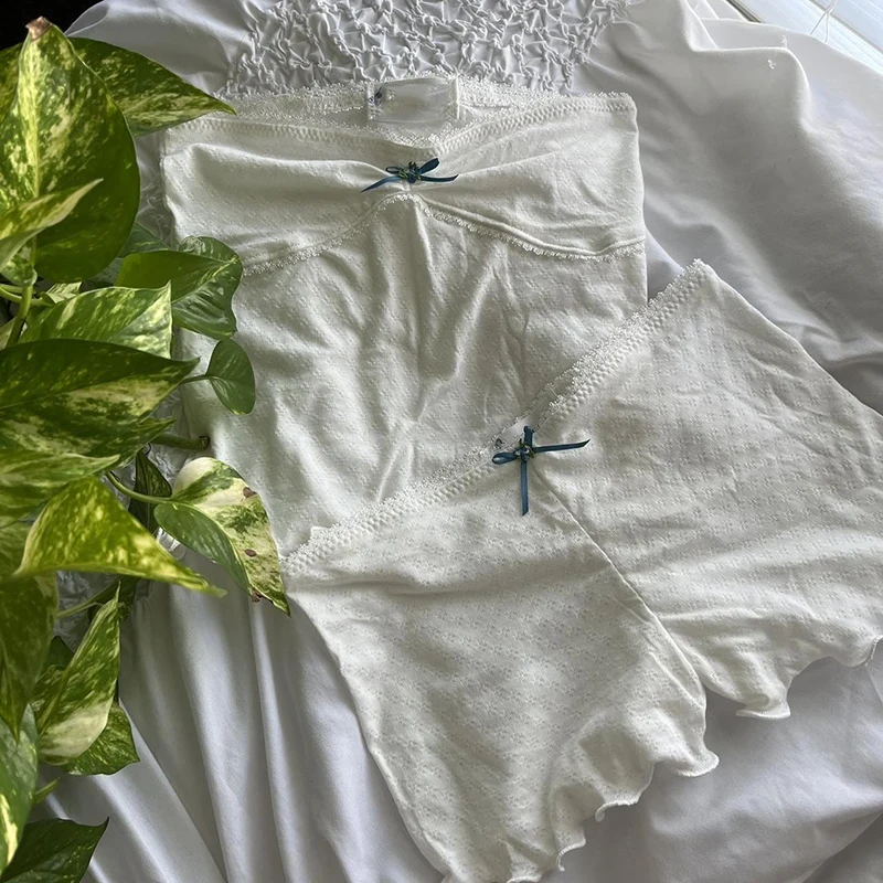 Fairy Grunge Lace Trim Strapless Tube Top + Shorts 90s Vintage Chic Women 2 Piece Set Outfits Chest Wrap Backless Crop Top Camis