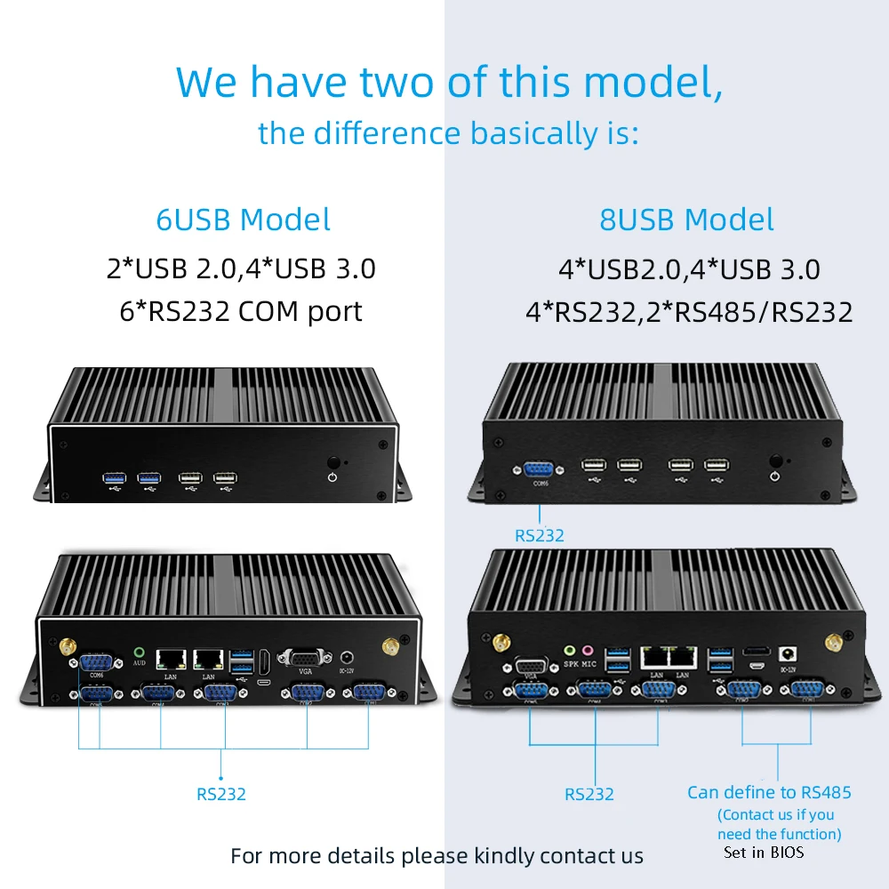 ● 6*COM ports, 4x RS232 type, COM5 COM6 support set to RS485 on board (8USB version)