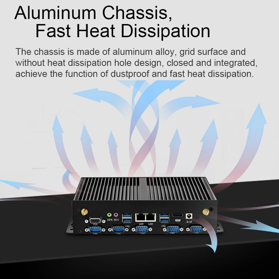 Fanless Industrial Mini PC Dual NIC LAN 6xCOM, RS232, RS485, Core i5 4200U, 2955U Win10/11 Ubuntu Linx Thunderbdt Game Computer