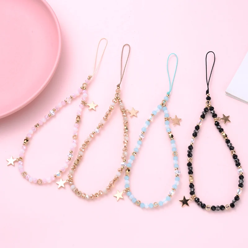 Fashion Acrylic Mobile Phone Chain Five-Pointed Star Pendant Beaded Telephone Lanyard Cell phone Hanging Rope for Women Jewelry