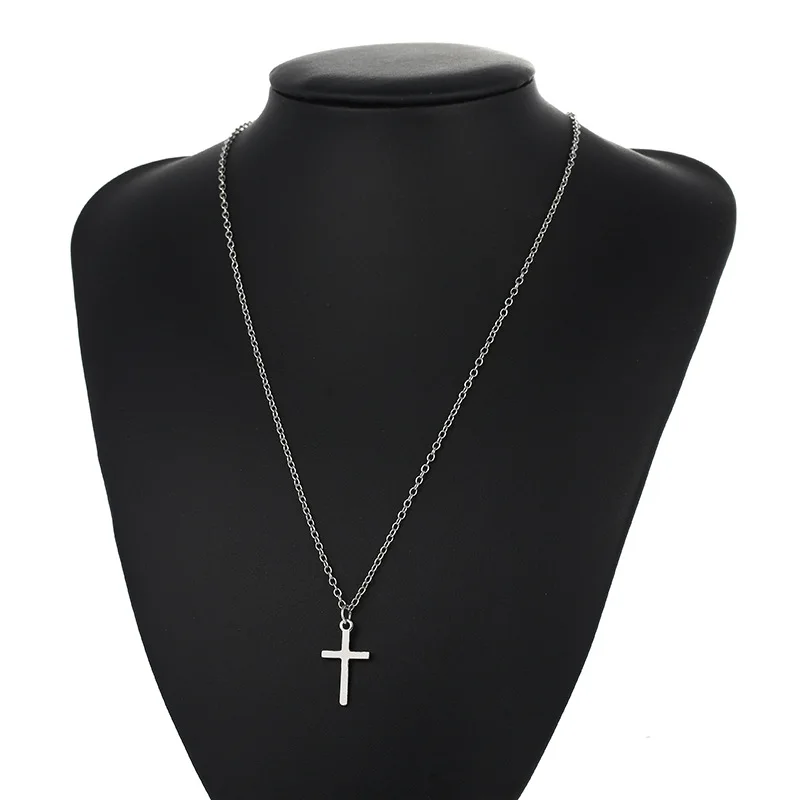 Fashion Christian Jesus Cross Necklaces Silver Color Long Chain Simple Pendants For Women Men Jewelry Gifts