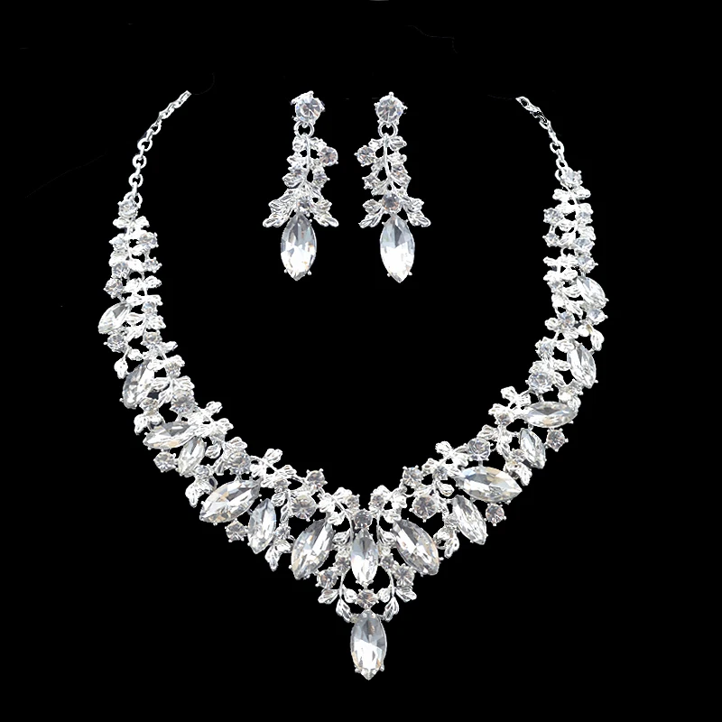 Fashion Crystal Indian Necklace Earring Jewelry Sets For Women Brides Bridal Wedding Party Costume Jewellery Accessories
