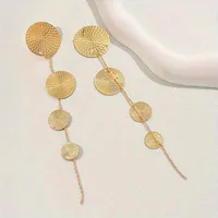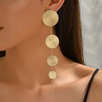 Fashion Gold Color Circular Pendant Earrings For Women Exaggerated Metal Long Tassel Round Geometric Earrings Jewelry Gifts