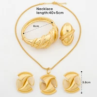 Fashion Gold Plated Jewelry Set for Women Spiral Clip Earrings Necklace with Bracelet Ring Dubai Engagement Bridal Accessories