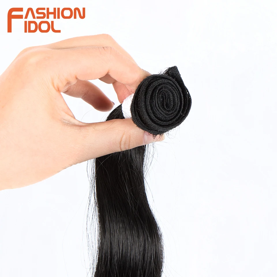 FASHION IDOL Body Wave Ponytail Hair Bundles 26 Inch Soft Long Synthetic Hair Weave Ombre Brown 613 Blonde 100g Hair Extensions