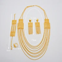 Fashion Indian Dubai Gold Color Tassel Jewelry Set For Women Bridal Long Necklace Set Nigerian Choker Necklace Wedding Sets