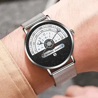 Fashion Men Quartz Wristwatch Business New Star Moon Concept Black and White Watch Calendar Half Wheel Time Display Creative