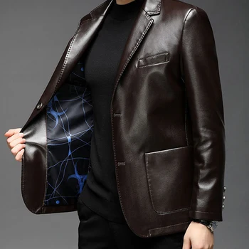 Men Leather Suit Jacket Men Slim Fit blazer Coat Men Fashion Leather jacket Streetwear Casual Blazer Jackets Male Outerwear