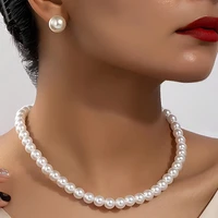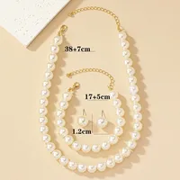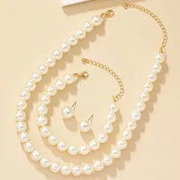 Fashion Minimalist Imitation Pearl Necklace Earrings Bracelet Jewelry Set Women’s Party Accessories