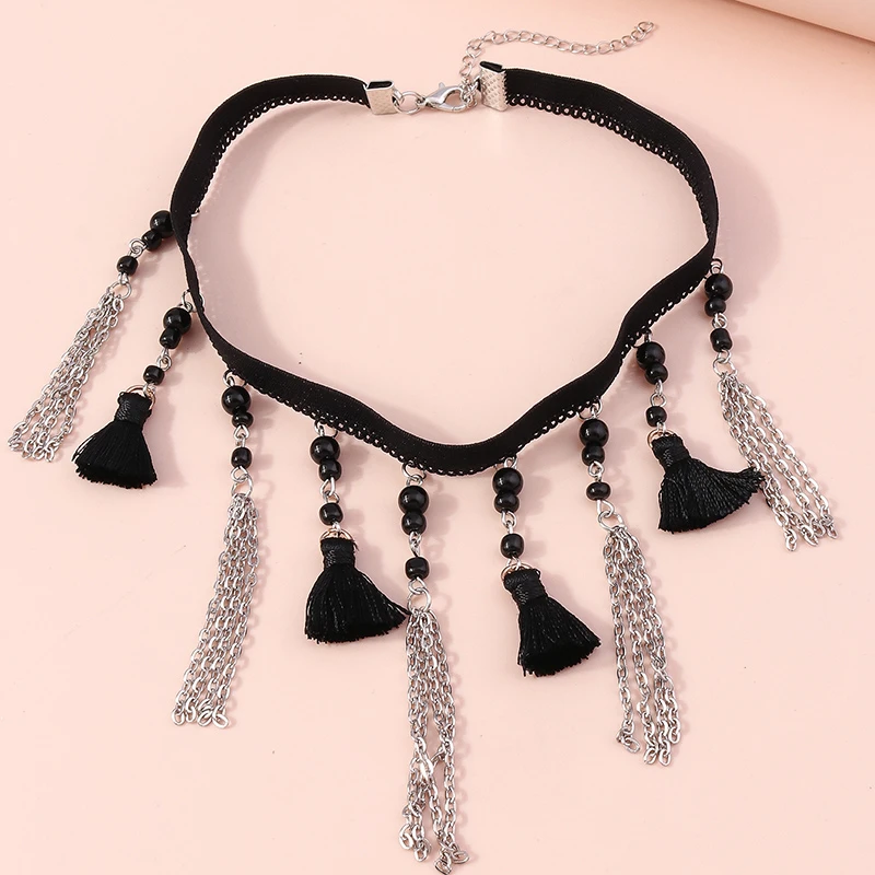 Fashion Red Black Velvet Necklace for Women Boho Sexy Tassel Lace Choker Necklace Girls Party Festival Jewelry Gifts