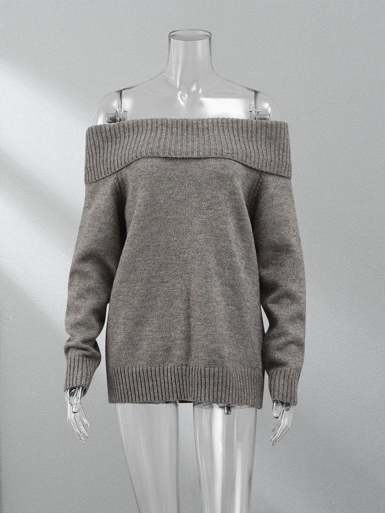 Fashion Sexy Solid Off Shoulder Female Jumpers Casual Slash Neck Long Sleeve Sweater Autumn Ladies High Street Knitwear