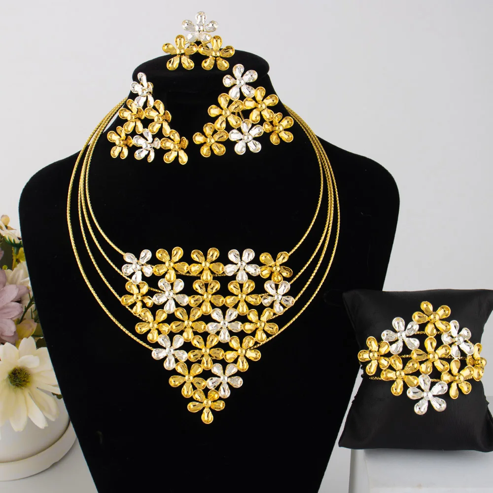 Jewelry Sets For Women Gold Color Chain Luxury Design Earrings Ring The Latest Jewelry Party