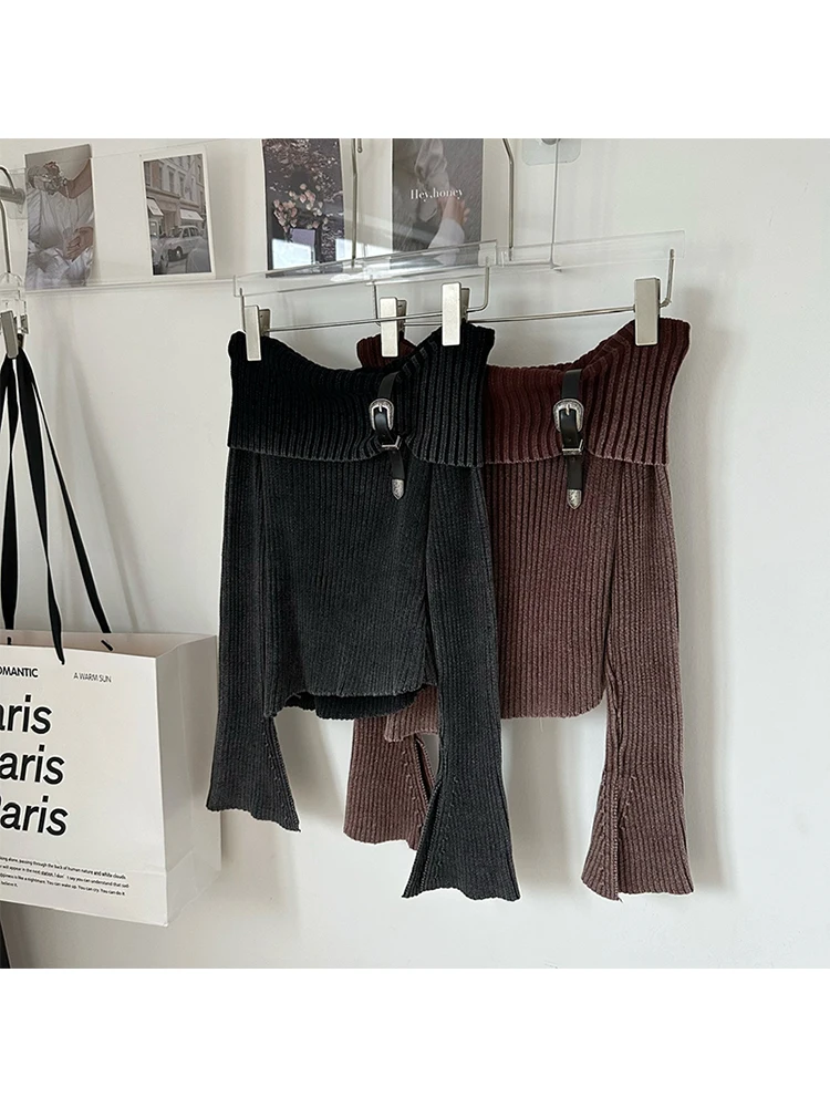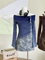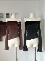 Fashion Simple Classical Knitted Sweater Slash Neck Off Shoulder Long Sleeve Pullovers Flare Sleeve Autumn Winter Y2K Streetwear