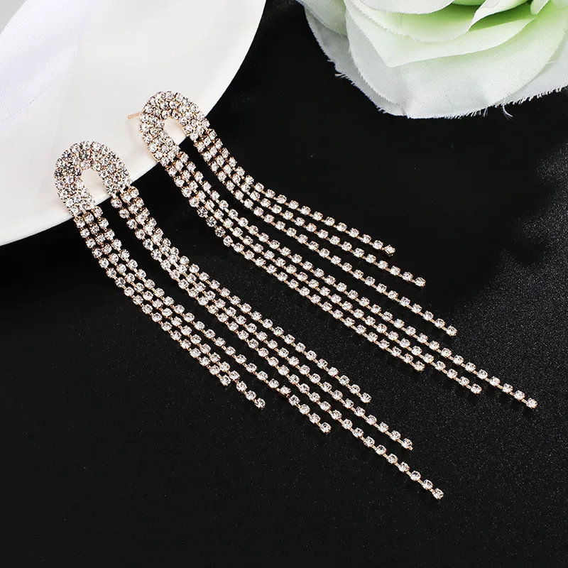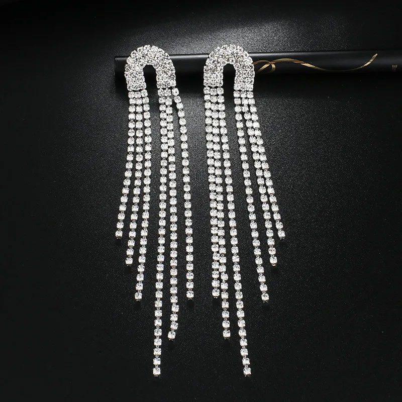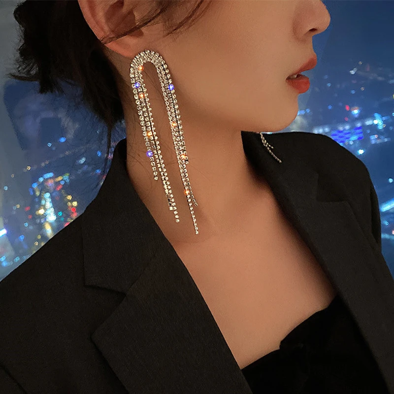 Be the first to review “Fashion Statement Earring Long Full Rhinestone Big Earrings for Women Shining Tassel Dangle Earrings Wedding Jewelry Gift” Cancel reply