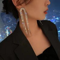 Fashion Statement Earring Long Full Rhinestone Big Earrings for Women Shining Tassel Dangle Earrings Wedding Jewelry Gift