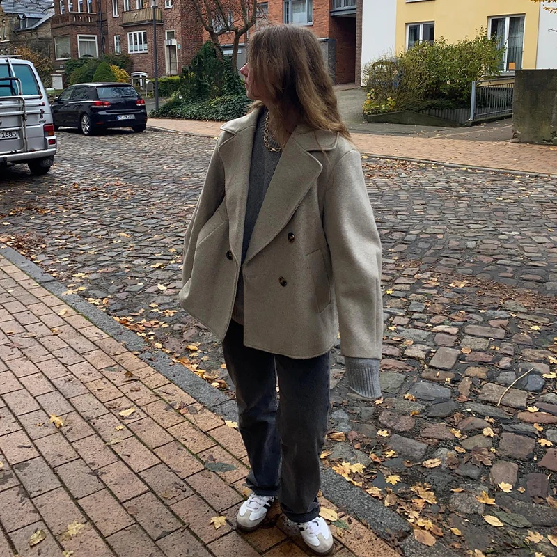 Fashion Turn-down Collar Jacket Women, Long Sleeve Loose Single Breasted Street Jackets Female Casual Pocket Solid Outwear