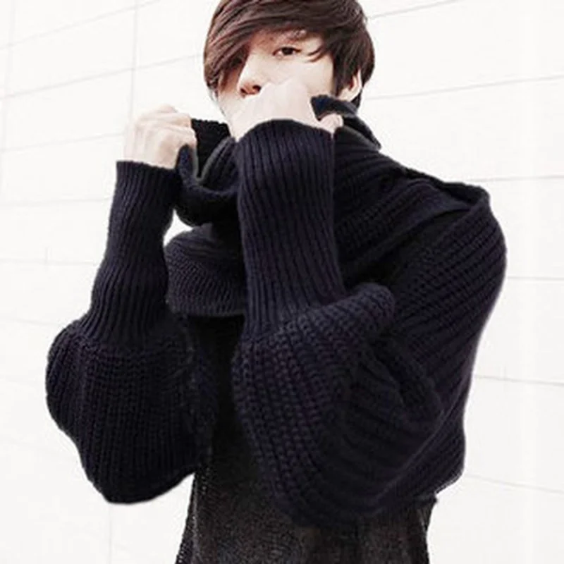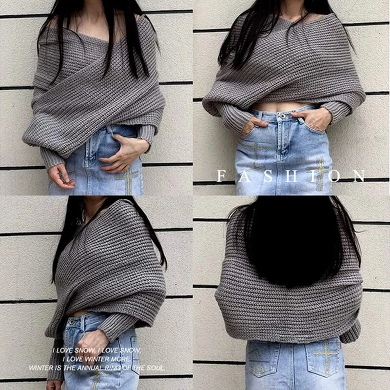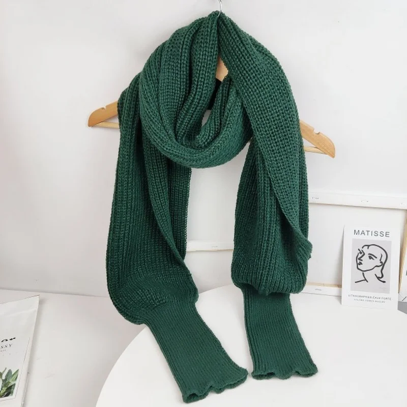 Fashion Winter Warm Solid Color Knitted Wrap Scarf Crochet Thick Shawl Cape with Sleeve for Women and Men Scarf with Leeves