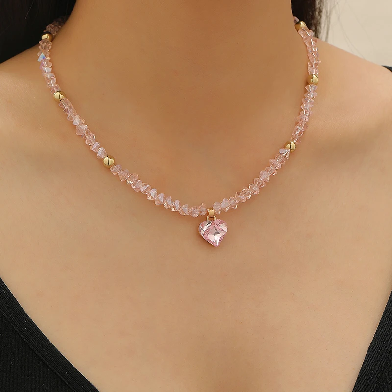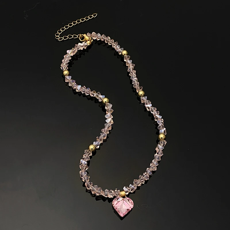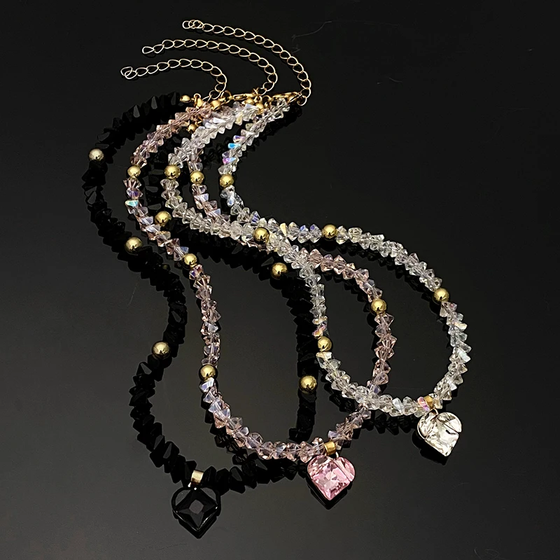 Fashion Y2K Zircon Heart Pendant Crystal Choker Necklaces for Women Sweet Cool Style Temperament Beaded Necklace Party Jewelry