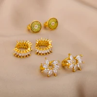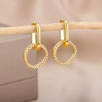Fashion Zircon Circle Drop Earring for Women Stainless Steel Gold Color Round Pendant Dangle Earring Jewelry Gift Brincos Bijoux