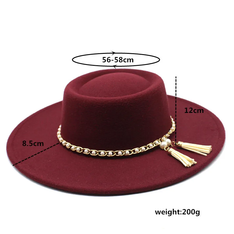 Fedora hat pearl chain series autumn and winter ring flat top fashion men and women felt jazz hat Fedora