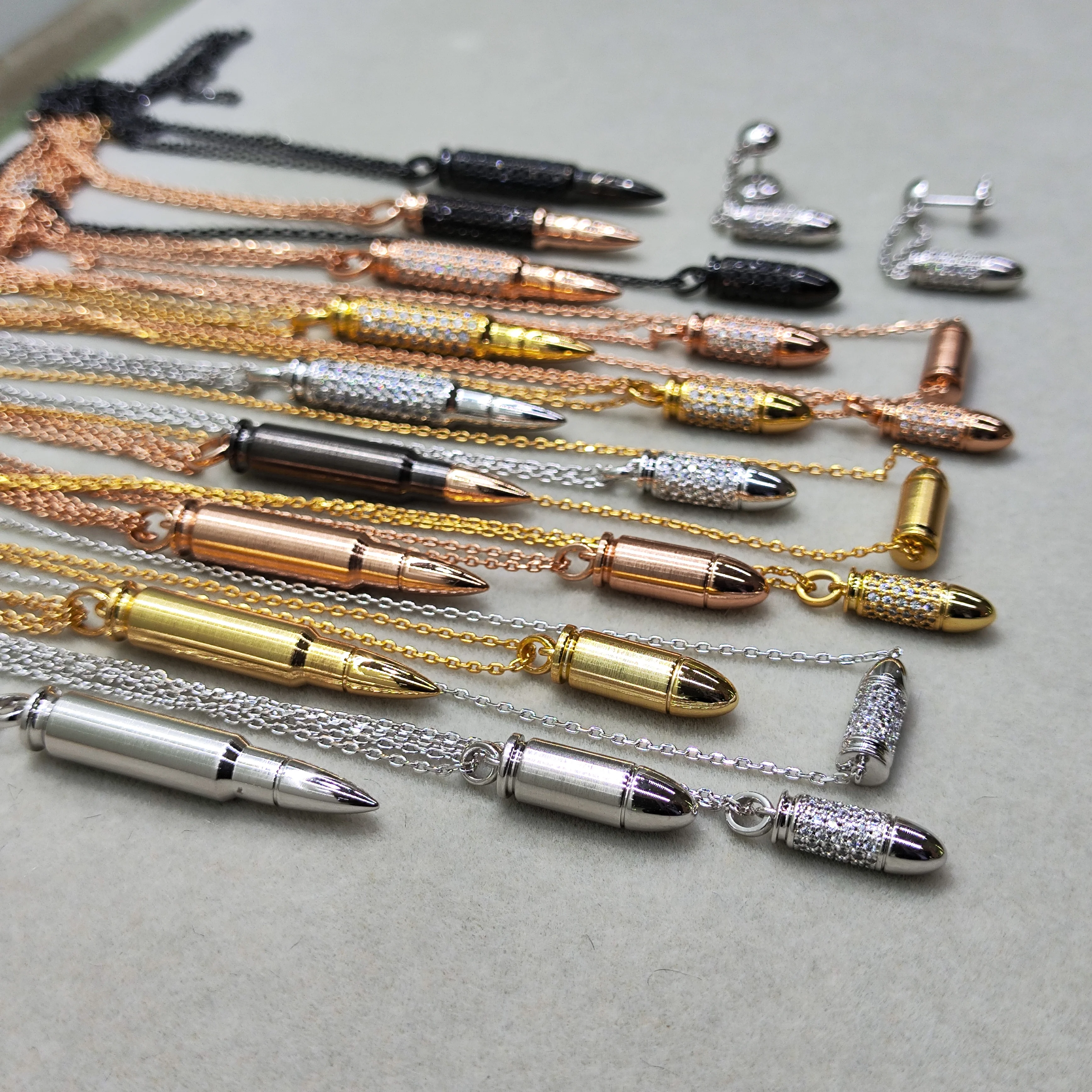 French Luxury Statement Jewelry 925 Silver Bullet Necklace Bracelet Earrings For Men And Women Holiday Gifts