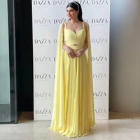 Fuchsia Chiffon Dubai Evening Dresses with Cape Sleeves Yellow Arabic Elegant Women Wedding Party Formal Gowns