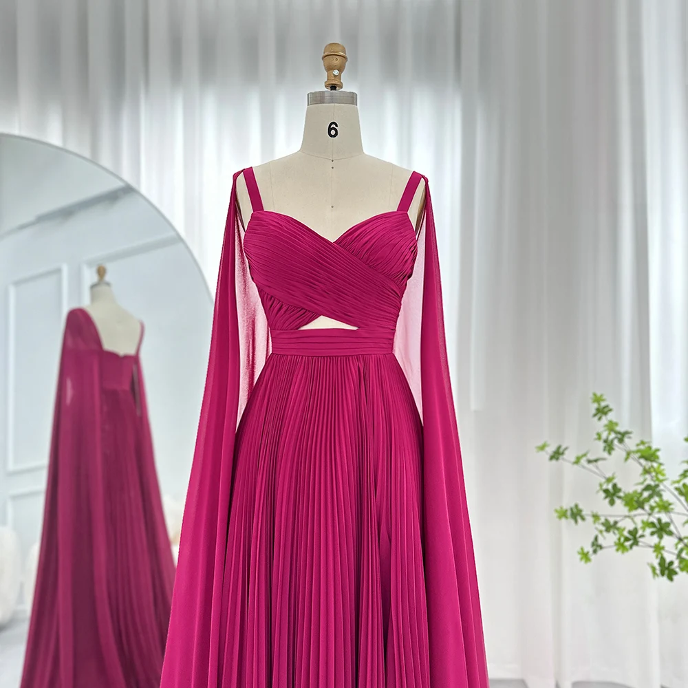 Be the first to review “Fuchsia Chiffon Dubai Evening Dresses with Cape Sleeves Yellow Arabic Elegant Women Wedding Party Formal Gowns” Cancel reply